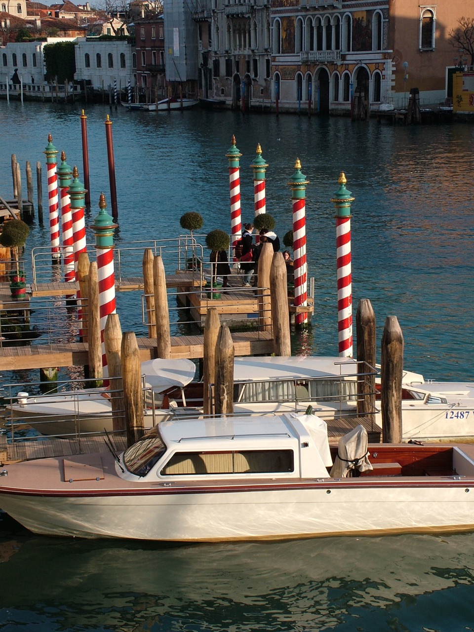 - Venetian motor launches tied up next to poles on Grand Canal © Henry Hyde